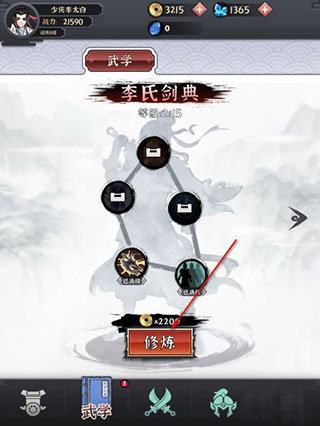 1若想修炼武学,在进入《少侠太白》游戏后,点击页面下方的图书图标。