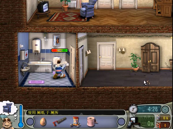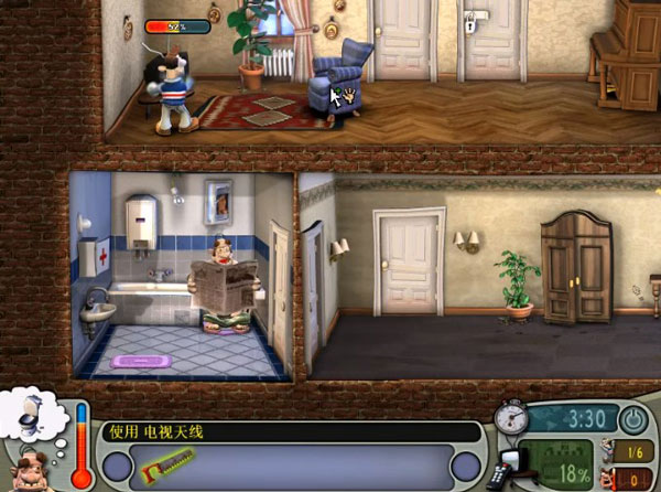 7、等邻居去卫生间之际,悄悄使用电视天线,再用锯子弄坏沙发,随后回到门厅,就能目睹邻居被恶搞的那一刻。