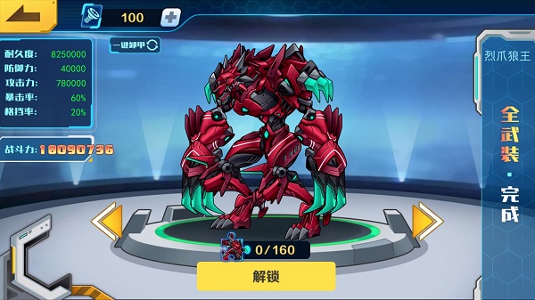 确切地说,机甲斗兽场中的狼王名为烈焰爪狼王,这是新版本更新后推出的全新机甲。在机甲仓库进行整备操作时,就能查看烈焰狼王的详细属性。其初始战力大约可达18000000,而且耐久度、防御力、攻击力以及暴击率,都远超玩家此前所能触及的程度。