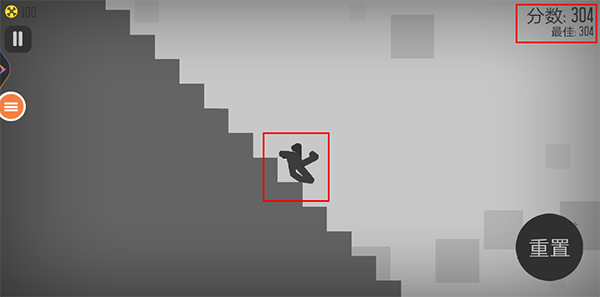 4、完成上述设置后,按住【开始】,就能将火柴人往下推。由于推动方式各异,火柴人坠落与摔倒的方式也会有所不同,如此一来,游戏结束时获得的分数同样会不一样哦!
