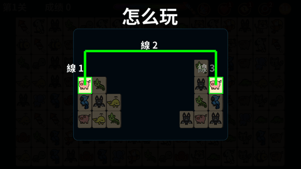游戏运用三种直线连接配对方式,玩家得依据相同动物图案的位置,挑选对应的连接方法。要是在配对时碰到无法连接的状况,相同图案的动物小板块便无法消除,具备一定难度。