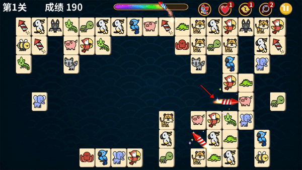 4、当你将两个相同的火箭进行配对并消除之后,它会帮助你消除两个小动物。