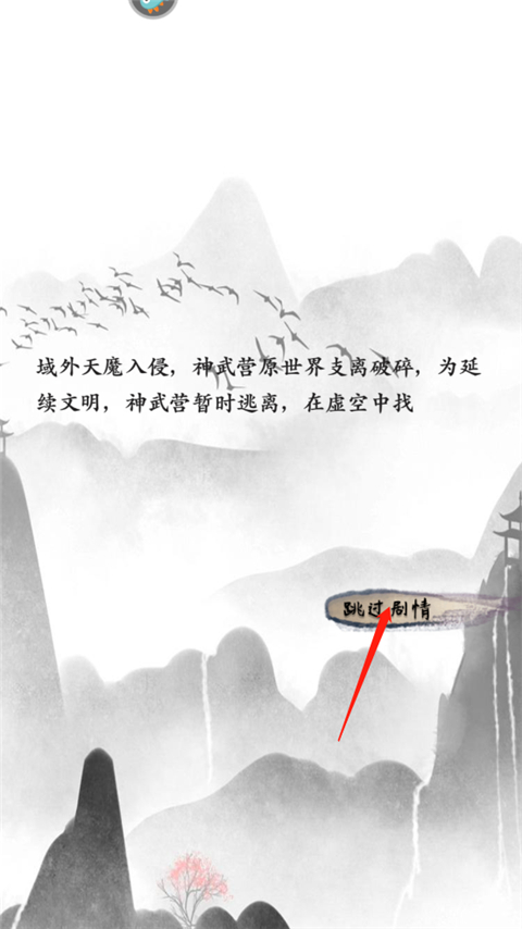 1、进入游戏,它会以文字的形式来描述背景,点击跳过剧情;