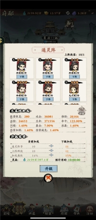 通灵阵跟着龙脉升就行,通灵阵等级为龙脉2倍,通灵阵加的属性有限,主要在于回能速度,里面优先放200能量回复的侠客(蓝色紫色都可以)等到有红色200回能的侠客可以稍微升一下吃点属性加成。