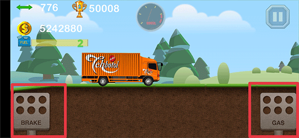 2、进入游戏后,通过左下角的BRAKE来控制汽车后退,右下角的GAS则用于控制汽车前进。