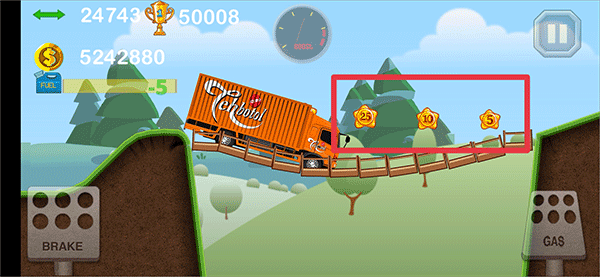 3、接着操控汽车持续前行,同时收集沿途出现的数字星星,若收集到汽油,就能为汽车补充燃料。