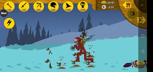 《火柴人战争:遗产》是一款颇为经典的对战塔防游戏。进入游戏,首要任务便是获取资源。我们只需点击屏幕左上角的“锄头”按钮,便能召唤出负责挖矿的火柴人。这些火柴人会拖着大大的包裹去挖矿,如此一来,我们就能获取更多矿石,进而召唤出战斗类的火柴人。