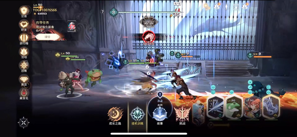 4、进入游戏,界面如图所示。该游戏具备离线挂机作战功能,玩家即便退出游戏,系统也会自动展开作战行动并获取经验。