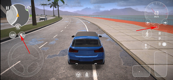 2、右下角的方向盘可以控制车辆的方向,右下角两个按钮分别是加速和刹车按钮;