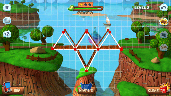 《桥梁建设者模拟器》的最新版本,是一款以模拟桥梁建造为主题的物理游戏。在游戏里,玩家需要建造一座或者多座桥梁,以帮助车辆顺利过河。这看似简单,然而,想要让桥梁能够稳稳支撑车辆的重量,实则并非易事。玩家在着手搭建桥梁之前,务必留意周边的各个红色支点,依靠这些支点来构建桥梁。要是不小心搭建失误,或者木板使用过多,也无需担忧,只需双击屏幕,或者点击“CLEAR”按钮,就能轻松删除多余的木板。