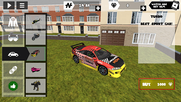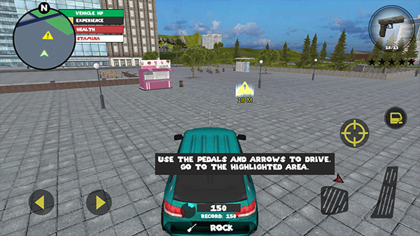 2、当角色身旁出现车辆时,屏幕左侧会显示一个汽车头形状的按钮,点击该按钮,角色便能抢夺车辆。操控车辆时,屏幕右下角有两个踏板,左边是删除按钮,右边是油门;屏幕左下角则有类似方向盘的部件,用于控制方向。务必熟练操控汽车,因为这是快速获取金币的最佳途径。