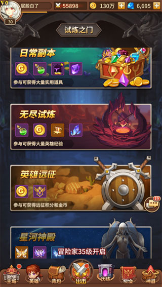 闪烁之光的英雄远征副本在游戏主页面下方的历练当中查看。玩家点击历练入口,就能看到英雄远征入口,只要玩家的主人物等级达到了30级就可以自动的解锁。
