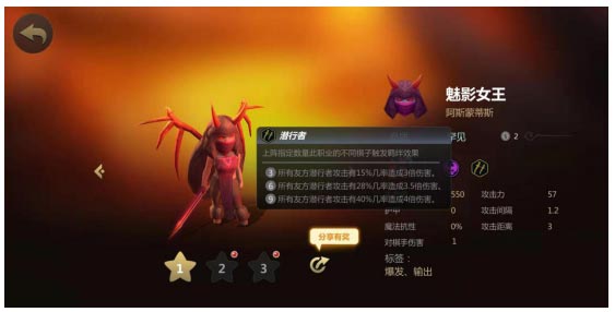 潜行者:3个刺客在场时,所有友方潜行者有15%的概率造成3倍伤害。6个潜行者在场时,有28%的概率造成3.5倍伤害,9个潜行者在场时,有40%的几率造成4倍伤害。
