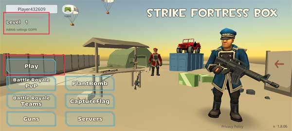 1游戏开始时,你会看到自己的等级为1 。玩家需参与比赛获取经验值,以此提升等级,点击“play”即可开始游戏。