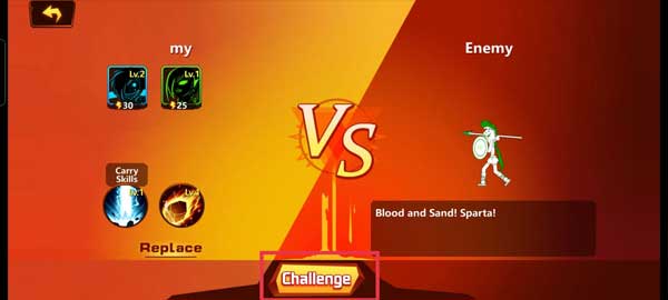 4、在这场游戏中你会获得左边两种技能和士兵卡牌,点击下方的Challenge。