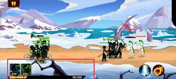 6、召唤左边的士兵卡牌,能唤出众多士兵助你更有效地击败敌人。在召唤时,下方黄色进度条会随之减少。