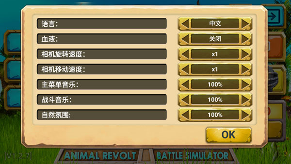 1、打开动物战斗模拟器,点击左上角设置按钮,然后点击语言切换成中文;