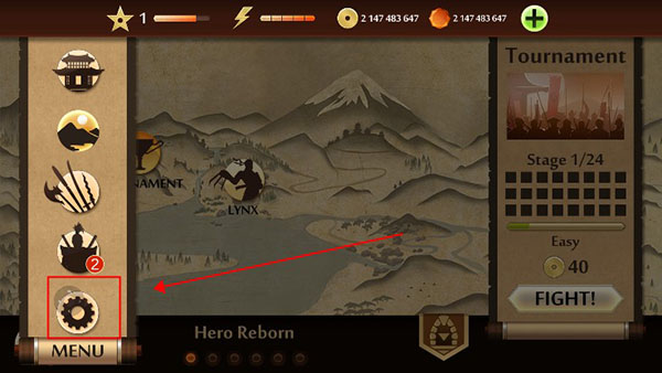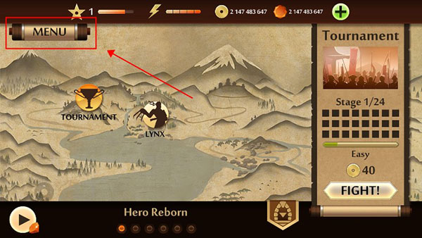 打开暗影格斗2,点击左上角的MENU菜单键;
