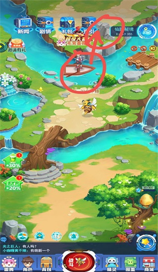 2、第二朵花获取方法:我们乘坐小船抵达仙踪秘境,此处操作与获取第一朵花时相同,点击上方空地,随后再次点击该空地,便能登上上方陆地。最后点击符文石头,打败守卫,即可得到第二朵花。相关图片如下: