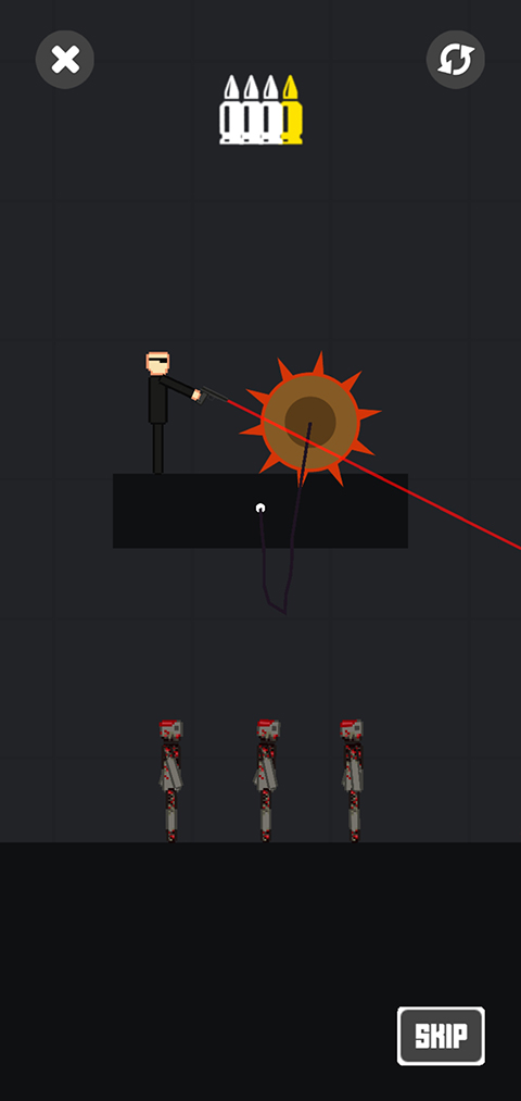 游戏采用简单明了的操作方式,玩家只需通过触屏控制火柴人的移动和瞄准,轻松完成射击任务。