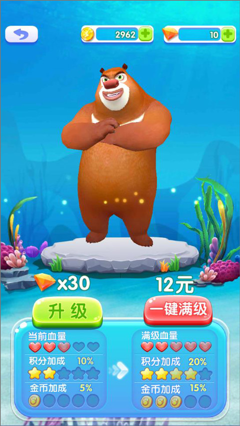 6、机关玩法独具匠心,为游戏首创。游戏中,新奇的关卡障碍接连不断,鱼群、巨石、齿轮、火球等元素令人惊叹连连。各类障碍物如潮水般涌现,带你尽情遨游在熊出没的冒险天地。不仅如此,游戏画面精致入微,高清场景更是给予你前所未有的视觉盛宴。