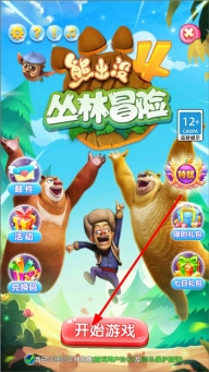 1、打开熊出没4丛林冒险最新版游戏,进入游戏页面,玩家可查看邮件、活动、兑换码、限时礼包、七日礼包等,点击开始游戏;