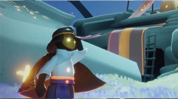 找到黄色人影,与它们互动 收集“光之翼”,我们的 飞行技能就可以得到 升级――斗篷背后 星星的数量就代表我们的飞行级别。