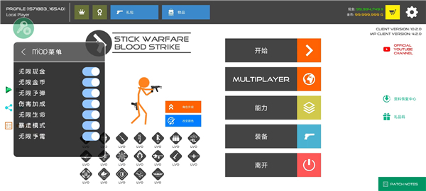 这次小编要给大家介绍的是火柴人战争鲜血打击2024版本,该版本经大神精心修改,具备诸多强大功能,像金币无限、美金无限、角色拥有不灭金身,子弹和手雷数量也是无穷无尽,敌人触碰到就会死亡,而且游戏速度提升至原来的3倍。感兴趣的小伙伴,不妨下载体验一番。