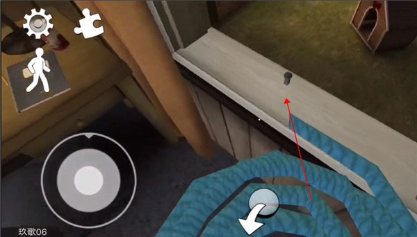 3、前往客厅,可选择查看人像1977(不查看也无妨)。之后,取洗发用品上放置的鸡毛掸子,去清扫楼梯下方那个布满蜘蛛网的地方。(注意,千万不要点击电视!若不小心点击了,务必立刻躲到窗帘后面!)