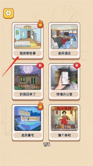 2、其中为用户准备了大量的关卡,而且每个关卡的玩法都有所不同,然而本质上大致一样,均是要找出不同点。我们点击“租房那些事”关卡。