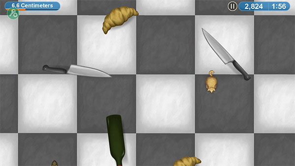 极其简单,玩家会化身为小动物,一步步成长,逐渐壮大。而成长途径仅有一个,即吃掉比自身小的事物,像虫子、老鼠、猫、狗、汽车、树木、房屋乃至行星等所有东西。随着吃的东西越来越多,玩家所化身的小动物体型也愈发庞大,直至最后能将一切都吞噬,玩起来乐趣无穷。