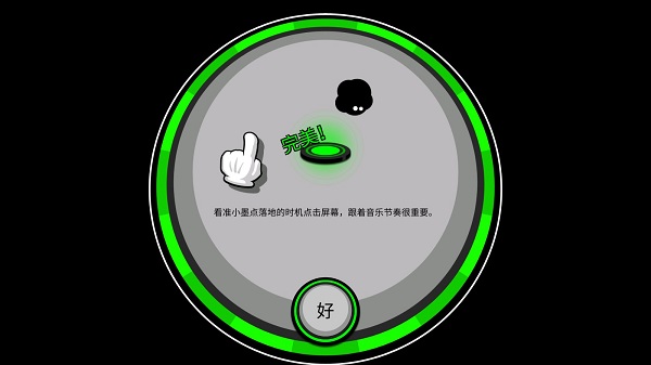 1、看准小墨点落地的时机,点击屏幕,跟着音乐节奏进行完美跳跃。