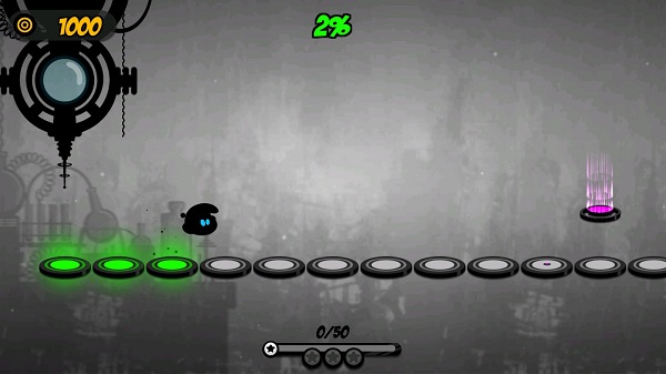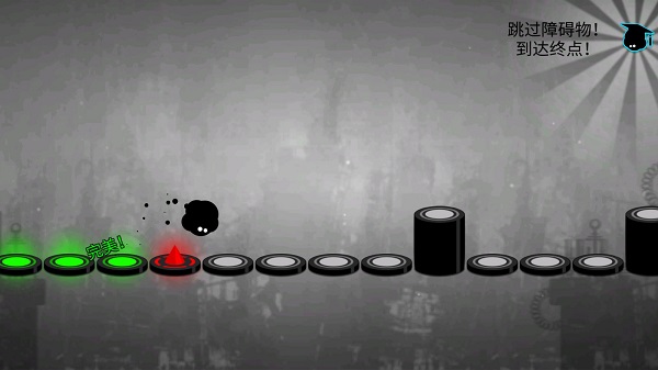 5、游戏本身的过程是根据节奏在屏幕上单击,让我们控制小墨点跳过或闪现穿过各种墙壁尖刺。