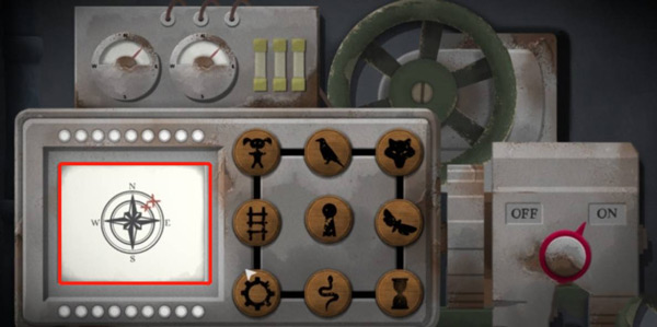 解谜的顺序是:鸟、蛇、蝴蝶、人、沙漏、齿轮、铁路、小女孩、蝴蝶、蛇、狼、鸟、蛇、人、齿轮、蛇、鸟 。按此顺序操作后,就能得到这张图,和玩家1一样,从而知晓指针应该指向哪里。