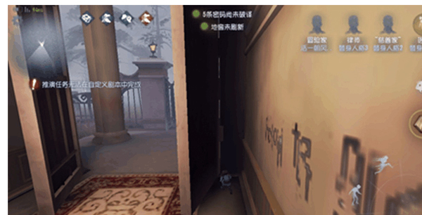 在这里我们可以看到冒险家缩小后,可以卡在墙壁外面的半空,蹲下的话监管者是打不到你的,可以完美和墙壁结合在一起(应该不算是BUG吧~),不过想要卡对位置要费好大劲,感兴趣的可以试试哦。