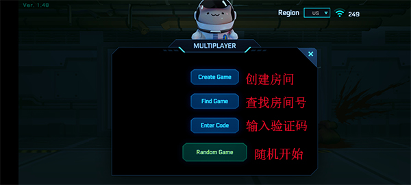 2、联机操作十分简便,既能够创建房间,也可以通过搜索房间号加入。要是你独自游戏,还能点击随机游戏开启冒险之旅。