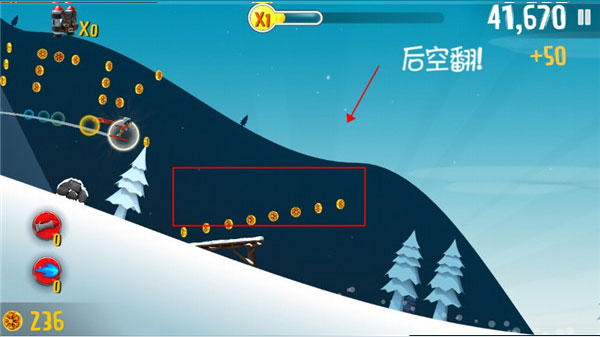 5、长按屏幕,即可施展后空翻等滑雪技巧,这能在游戏结算后提高分数。