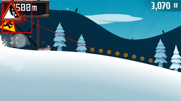 7、要是右上角的雪崩标志剧烈晃动且不停闪烁,便意味着雪崩即将追上你。