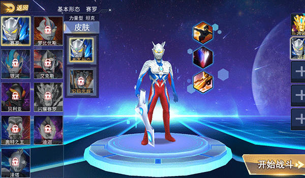 2、进入界面后,玩家点击左侧可切换奥特英雄,选择完毕后点击“开始战斗”即可。