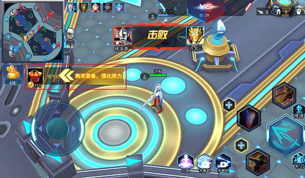 4、当你血条不足时,快速点击右下角的“回城”恢复。