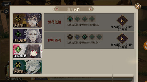 3、而第二个角色白泽主要是增加出战镜灵的生命值,也就是说这名角色比较适合一些反伤流的阵容,在反伤阵容中白泽的生命值加成效果能有更大的优势。