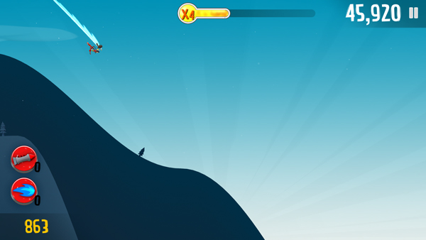 天上翱翔的老鹰,也能顺带载你一程,尤其在下坡时,飞行距离相当可观。要是下落过程中能穿过云层,还能额外加分,并且可抵挡一次碰撞。最厉害的当属雪地车,那速度无与伦比,能搭载一只雪怪和一只企鹅。要是遇上老鹰,老鹰会在前方开道,毕竟它无法将雪地车拉上天空。(游戏制作人真是太贴心啦……)当老鹰、雪地车、雪怪、企鹅齐聚时,就会触发FULL HOUSE加成,看着就让人满心欢喜。