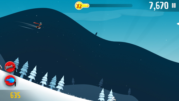 超强的速度感是本作的最大特色,游戏中有很多高速下落的坡道,玩家会一直感受那种速度的快感。游戏的画面虽不复杂但很精致,场景并非一成不变,而是会随着玩家滑雪距离的增加不断变化。
