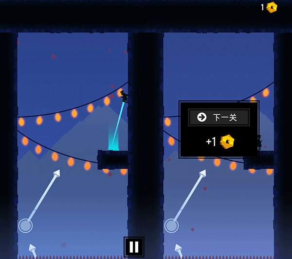 1、玩家跳跃时,若手势滑动有误,可能无法快速上升,甚至会下降。此时,玩家需在半空中注意改变忍者的前进方向,使其移动到更高位置。