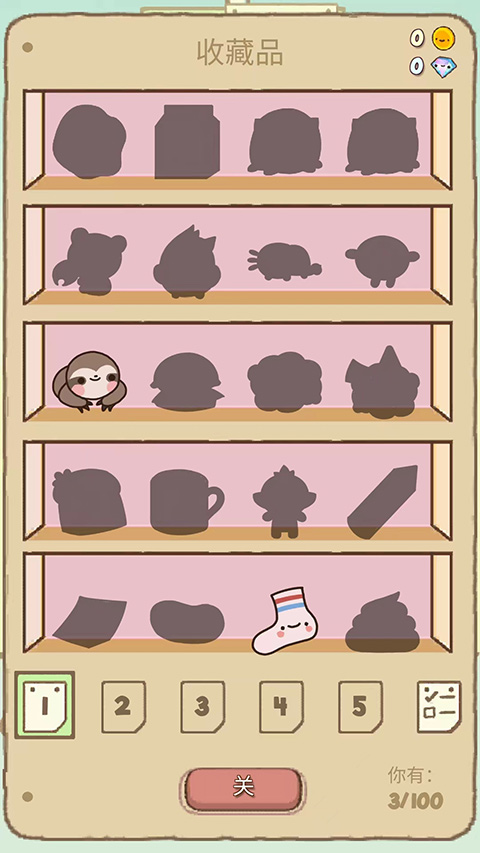 8、点击左下角的【收藏架】选项,在这里你能够看到已解锁以及未解锁的收藏品。若想解锁全部收藏品,你需要积极抓取物品并完成各项任务。以上便是爪男孩的具体玩法。