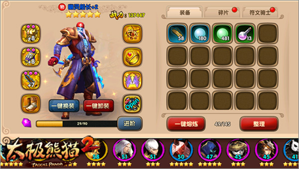 《太极熊猫2》游戏具备众多特色玩法,玩家能够尽情自由体验海量角色,随心开拓野外地图领域,感受翅膀成长带来的酷炫造型,还能任性地进行时装搭配DIY。全新的英雄角色,为玩家带来多元的职业体验。游戏采用极具创意的多角色切换设定,玩家可自由切换主控角色,畅享不同英雄战斗的快感。