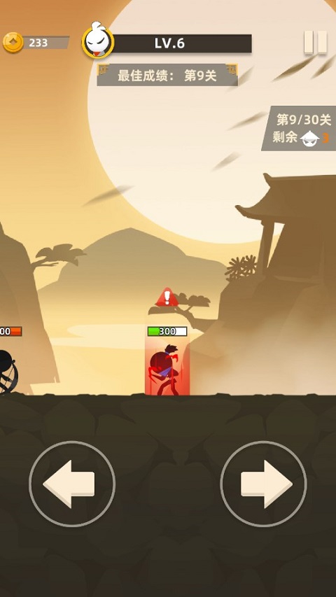 4、请注意:当角色被红色框笼罩,则预示接下来会有危险,及时躲避,防止血量过低。具体可通过左右方向箭头进行前进或后退。