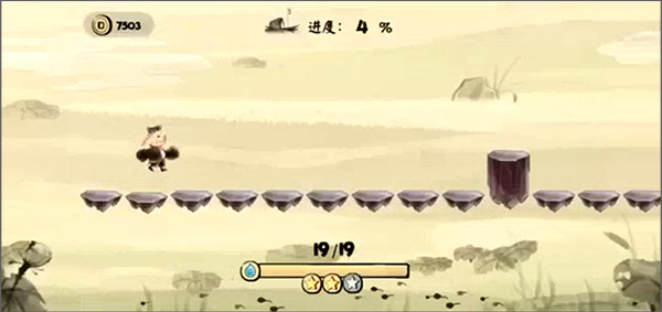 4、选定角色后开启第一关,玩家操控八戒在石头铺就的道路上前行,碰到较大的石块时,需通过跳跃的方式越过。