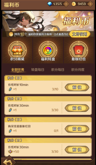 1、游戏中设有福利币活动,玩家能够借助完成任务来获得福利币,福利币可用于兑换充值,1个福利币等同于1元钱。
