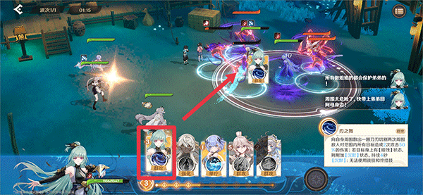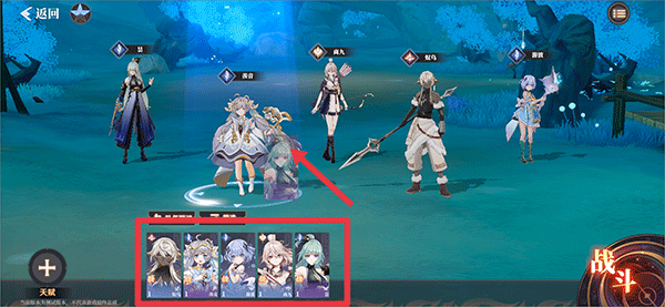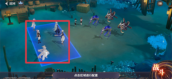 2、进入战斗时,首先点击角色区域进行角色的合理配置